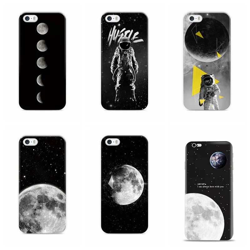 Soft TPU PC cover For Iphone 5 5SE 6 6PLUS 7 plus back cover man climb the moon in the Milky Way painted clear case